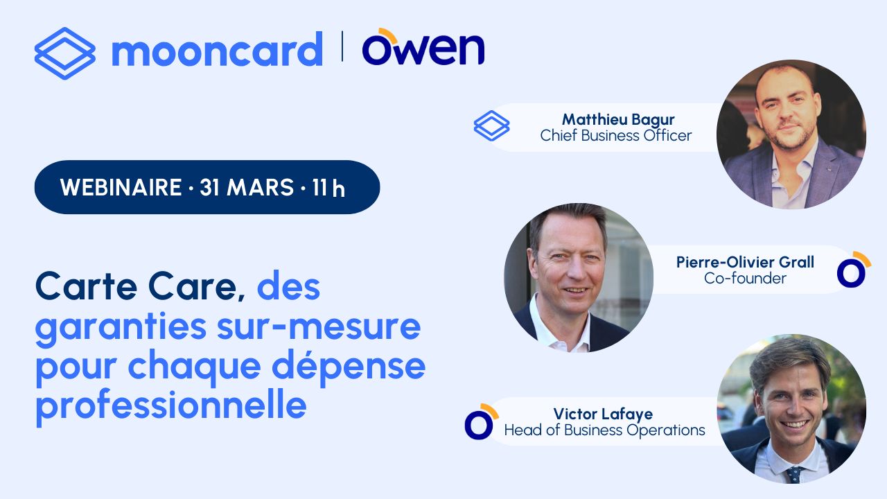 Matthieu BAGUR (Chief Business Officer - Mooncard), Pierre-Olivier Grall (Fondateur - Owen) et Victor Lafaye (Head of Business Operations - Owen) vous expliquent dans ce webinaire.